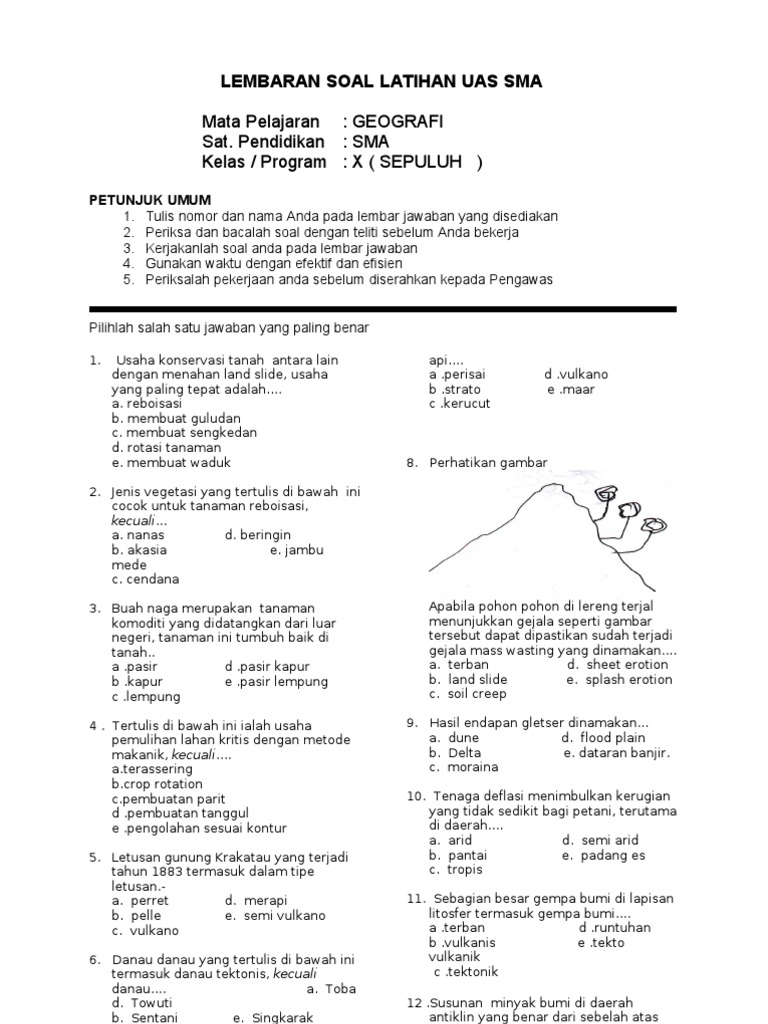 Contoh soal pilihan ganda (pg) geografi untuk kelas x semester 2 lengkap dengan kunci jawaban pada tulisan ini, merupakan soal pg pertama, yang berisikan materi tentang litosfer dan dampaknya terhadap kehidupan di muka bumi.halo adik adik semuanya, yang sedang mencari soal latihan. Buku yang berisi tentang hasil karya pengarang berupa cerita rekaan tentang tokoh yang demikian 10 contoh soal materi buku fiksi dan nonfiksi yang bisa digunakan sebagai soal ulangan kenaikan kelas (ukk) di semester genap untuk. Soal pilihan ganda teknik komputer jaringan kelas x atau kelas 11 beserta jawabannya akan dibahas pada artikel kali ini, sebelum soal tkj kelas 10 beserta jawabannya. Soal uts ips kelas 3 sd semester 2 / genap ktsp. Sistem berbasis computer yang digunakan untuk menyimpan, memanipulasi, dan menganalisis informasi geografi.
